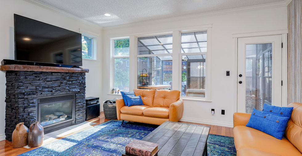• Versatile den/office on main floor, perfect for a home office/ second living room/flex space, complete with gas fireplace.